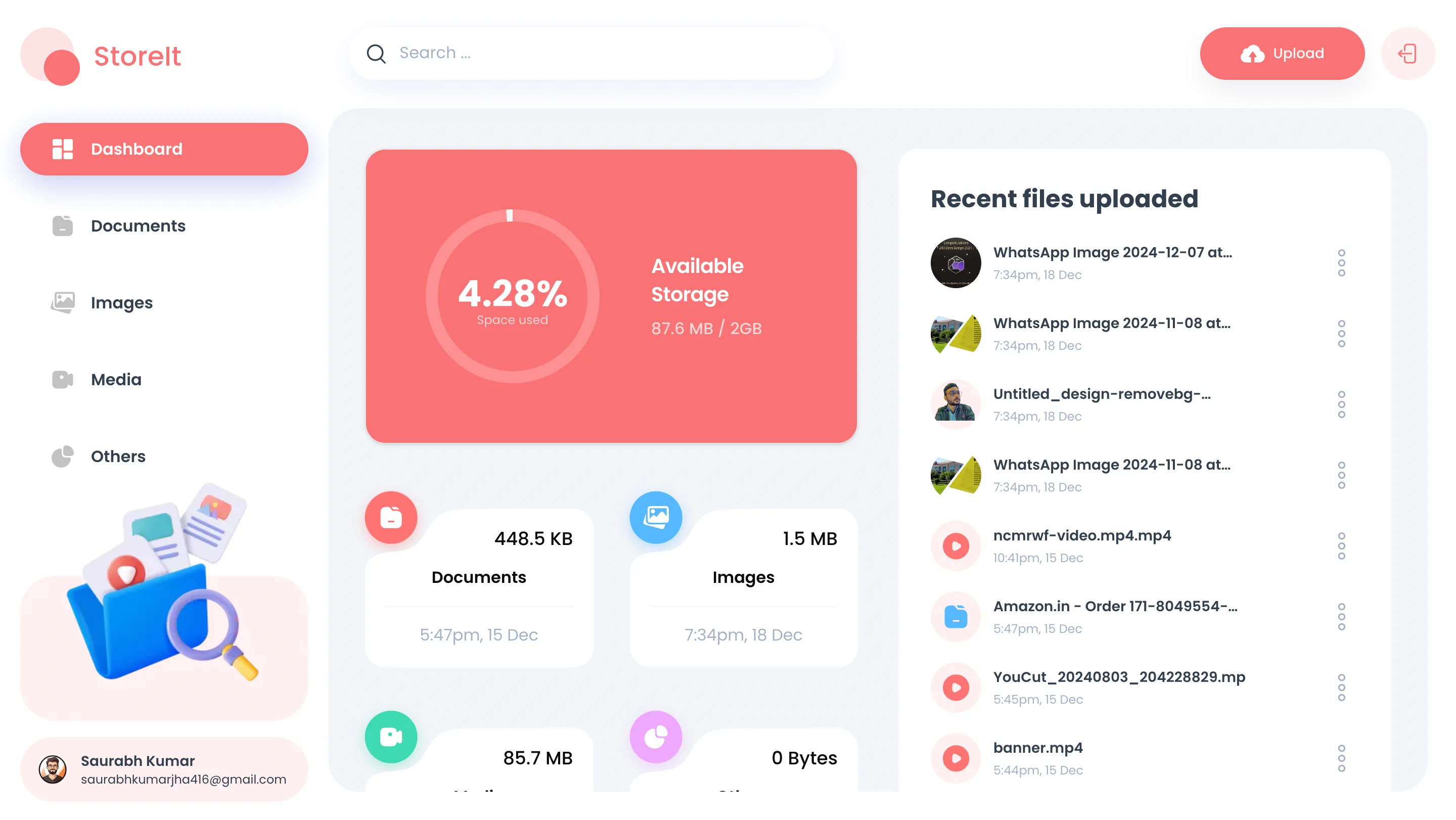A storage management application built with ReactJS and Firebase. Users can securely store, retrieve, and manage their digital assets. Includes real-time synchronization, intuitive UI, and robust security features.